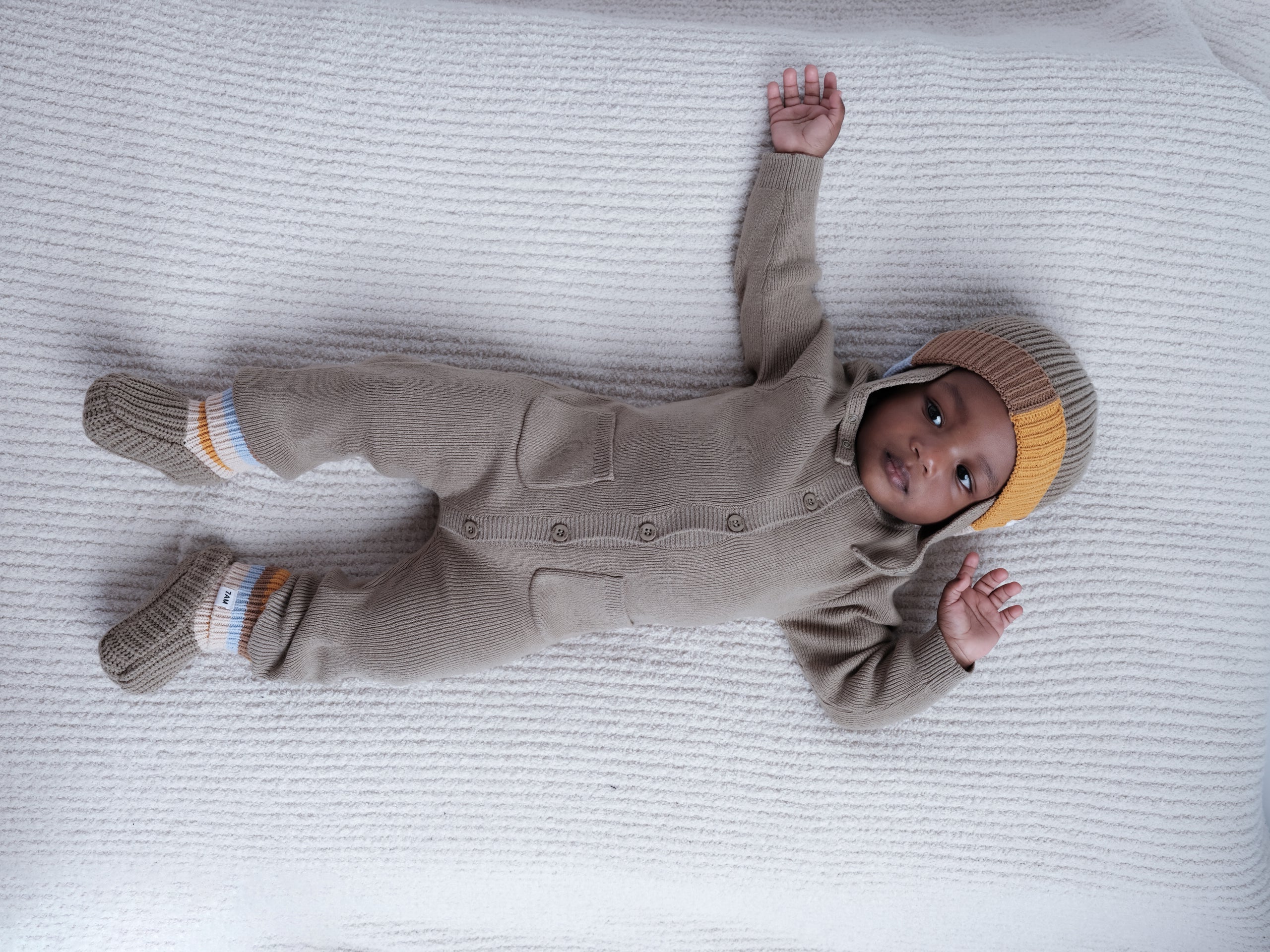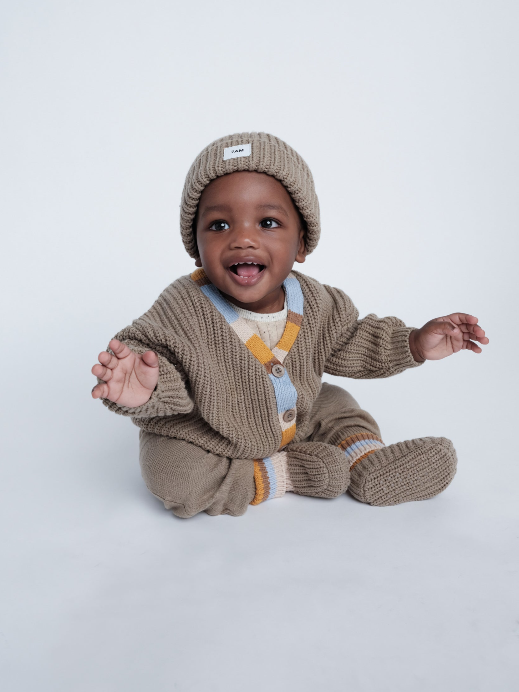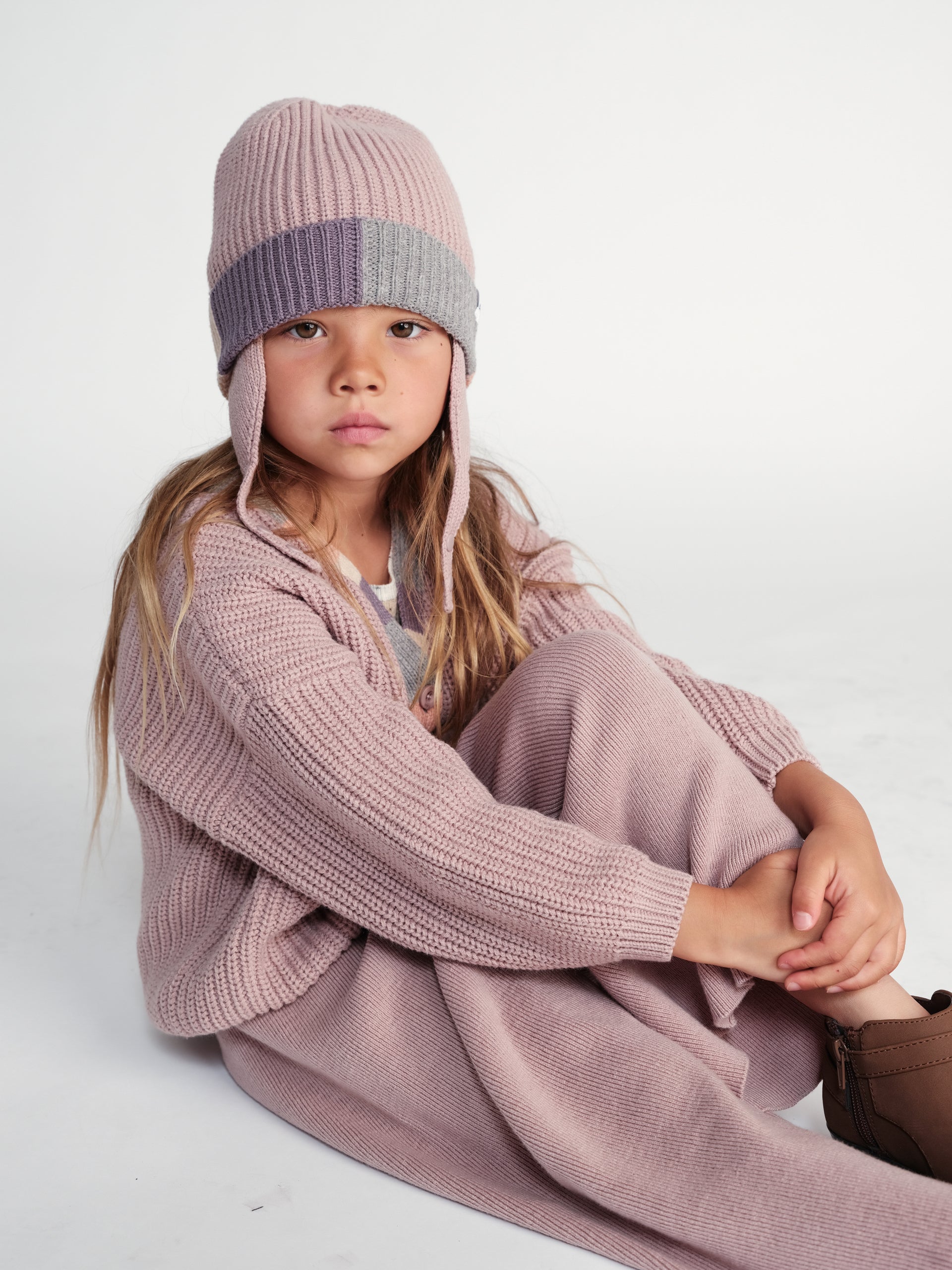 Subtle stripes and a play on 2 tone colors in: cozy crewnecks, boleros and adorable cardigans that pair harmoniously back to the ribbed wide pants and joggers for your little explorers. Accessories like headbands, ear bands, beanies, and balaclavas get your little one ready for the great outdoors.